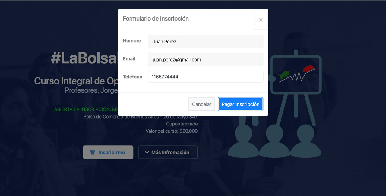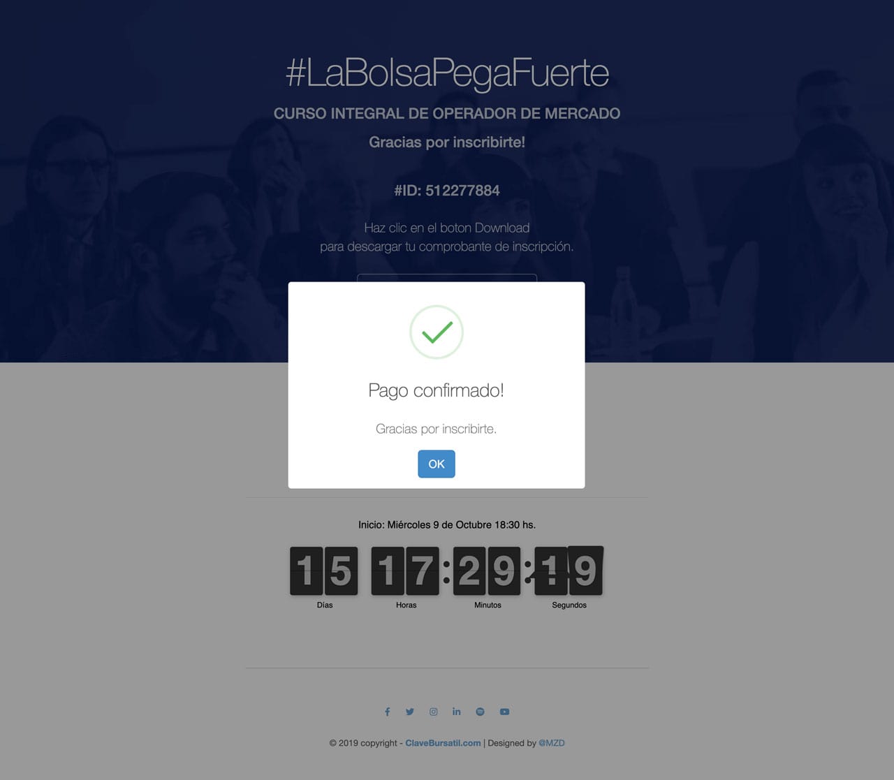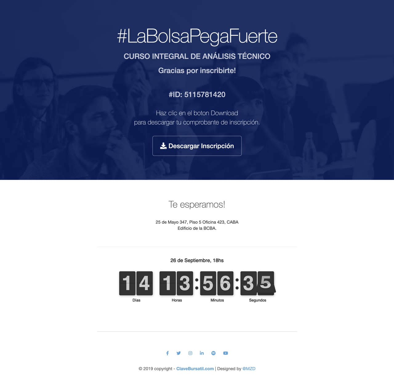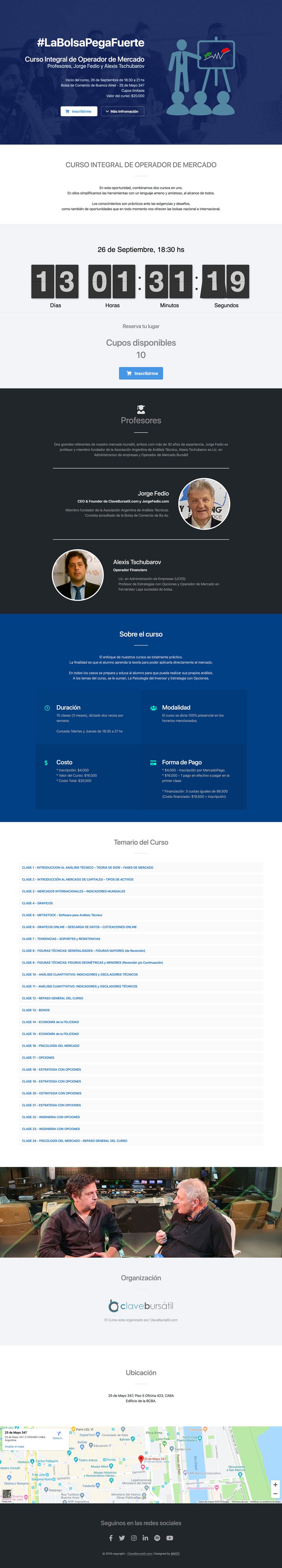 El landing page fue creado para la inscripción al Curso Integral de Operador de Mercado