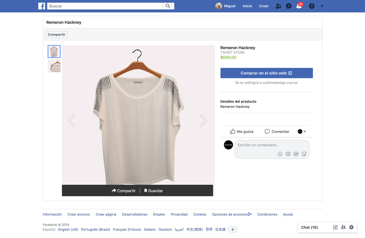 Integracion API que publica los productos en página de Facebook