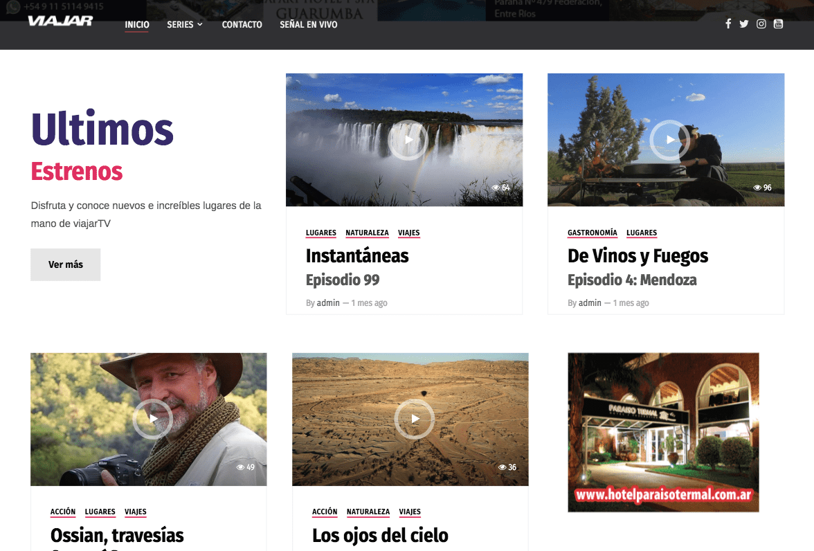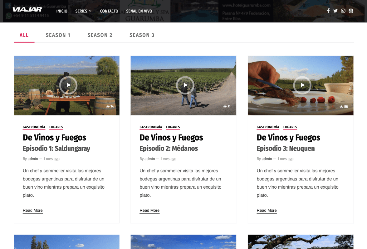 El sitio consta de diferetes secciones catalogadas por categorías, temporadas y episodios.