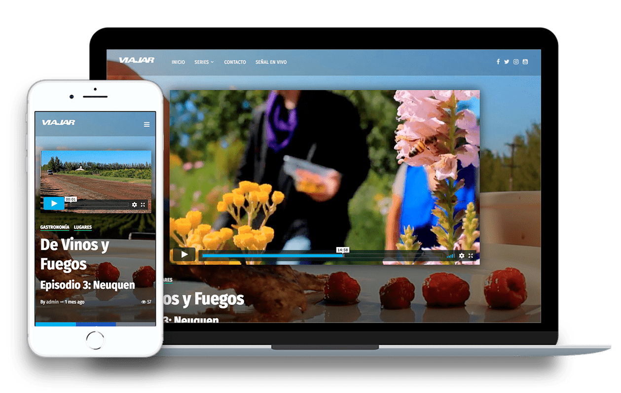 Cuenta con Google Analytics, posicionamiento y SEO, e integración con la plataforma de streaming Vimeo.
